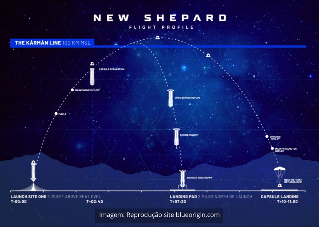 O lançamento, exclusivamente feminino desde a Vostok 6 (1963), como o Terra enfatizou, aconteceu hoje, 14/04/2025, às 10h31 (horário de Brasília) e durou cerca de 10 minutos. Ainda segundo o site, o foguete não saiu completamente da gravidade da Terra, mas ultrapassou a Linha de Kármán, considerada o início do espaço, que fica a 100 km de altitude. Veja a ilustração abaixo para entender melhor: