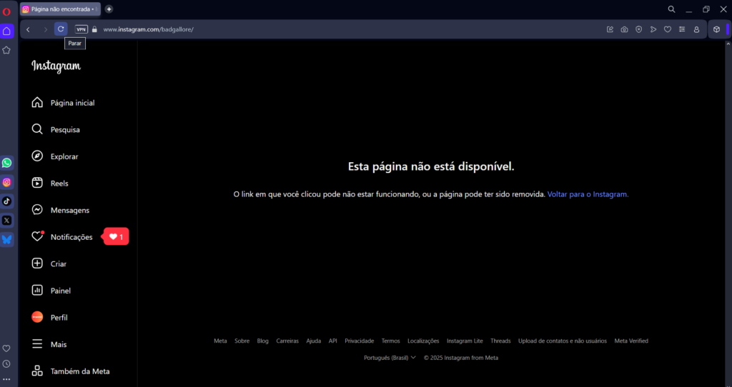 Após a notícia de que acabou o relacionamento do MC Daniel e Lorena Maria, a rede social dela ficou indisponível.